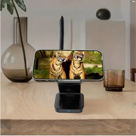MagSafe対応のこの折りたたみ式ワイヤレス充電ステーションは、最大30Wの出力でスマートフォンやアクセサリーを3台同時に効率よく充電できます。コンパクトに折りたためるため、持ち運びも簡単。デスクや旅行先での充電をスムーズにし、煩わしいケーブルから解放します。どこでも快適な充電環境を実現する、機能性と利便性を兼ね備えた一台です。