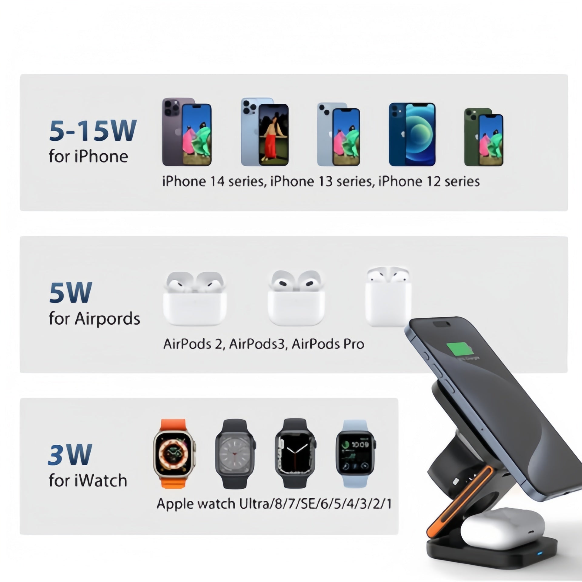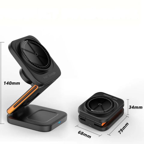 MagSafe対応 3台同時充電 ワイヤレス充電ステーション 30W 折りたたみ式