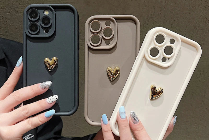 3Dハートデザイン iPhoneケース マット仕上げ 衝撃吸収 ソフトカバー