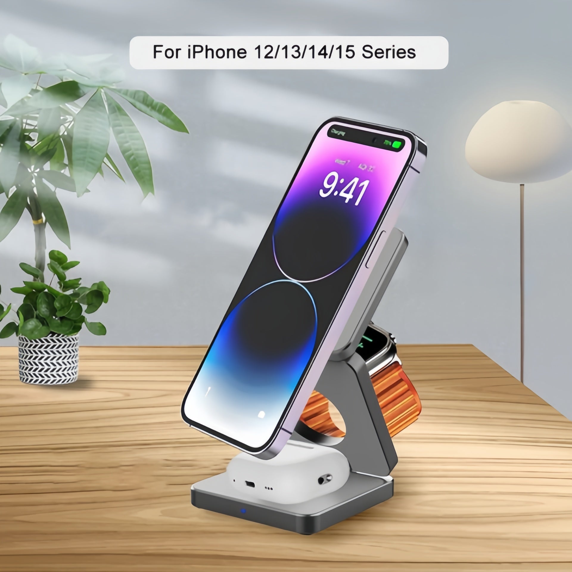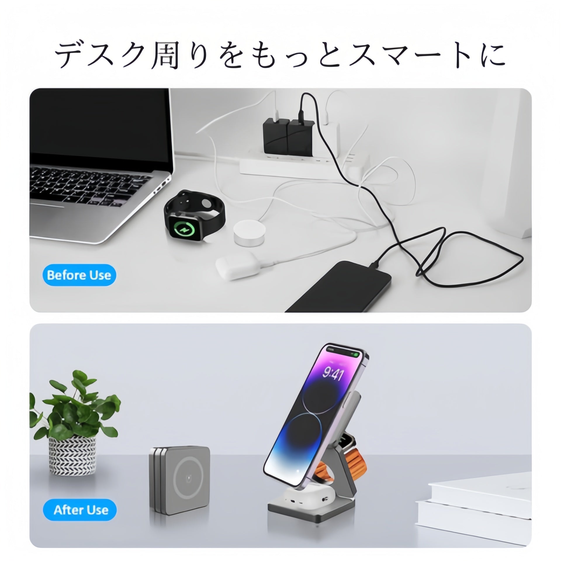 MagSafe対応 3台同時充電 ワイヤレス充電ステーション 折りたたみ式
